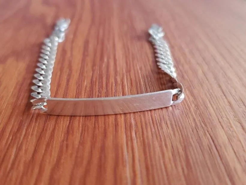 El grabado en plata 925 se realiza con precisión, garantizando que las letras o diseños permanezcan definidos y visibles a lo largo del tiempo. Además, la placa se convierte en el punto focal visual de la pulsera, atrayendo la mirada y reflejando la identidad de quien la lleva.